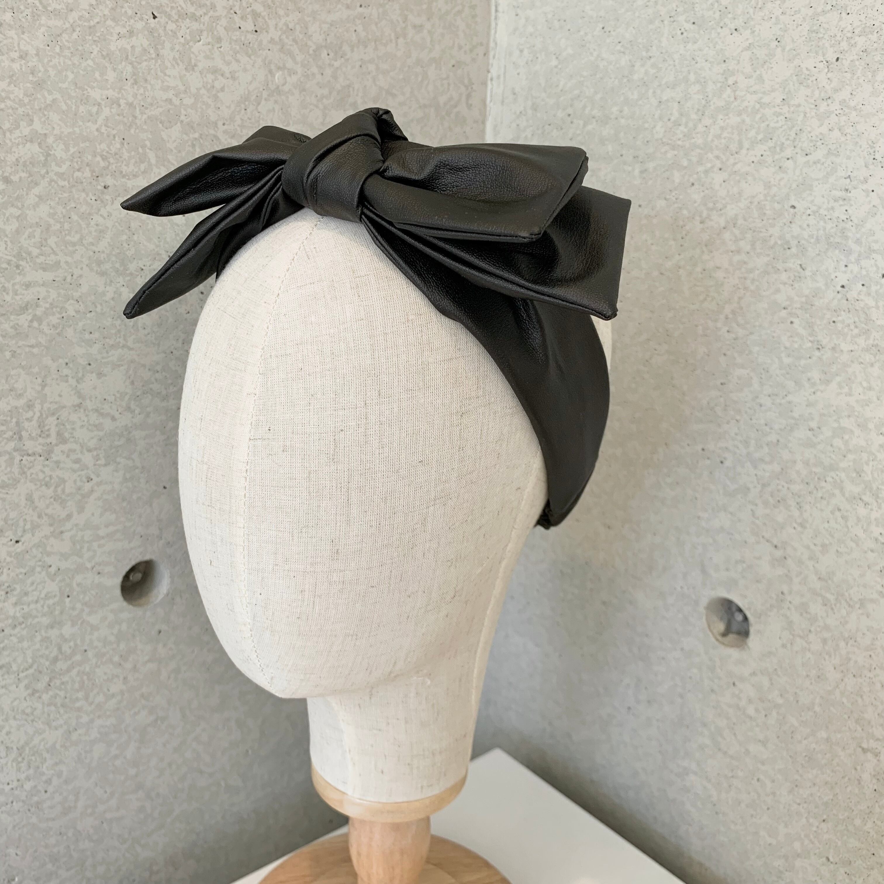 【限定】レザーリボンターバン(黒) ブラック レザーブラック レザーターバン |tytybijouー大人可愛い!オリジナルヘアアクセサリー通販
